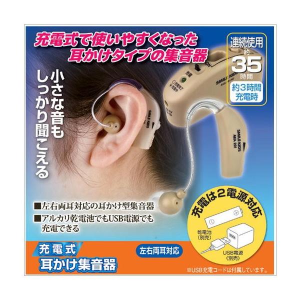 流行グッズのコレキテル 充電式 耳かけ集音器 左右両耳対応 乾電池でも使用できる
